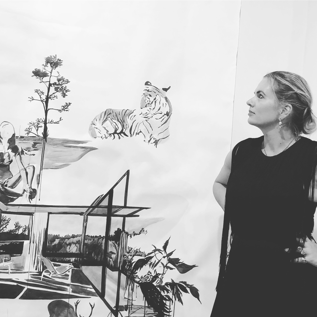 Camilla Blauenfeldt, kunstmaler, som forener akryl og collage i både figurative og abstrakte værker. @galleri_frub